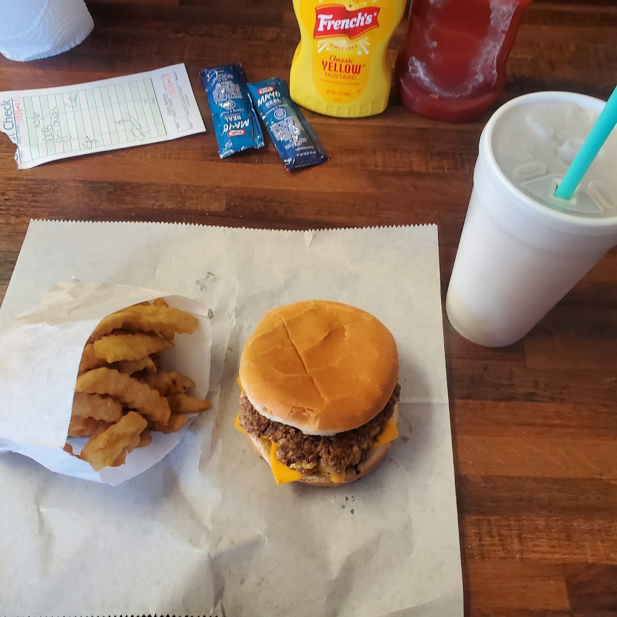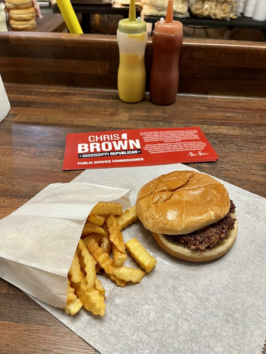 No menu. Was told just burger and fries. Online said they closed at 3pm but was locked in by 2 on Saturday. Even though I came in as they wanted to close, was still friendly and food was delicious.